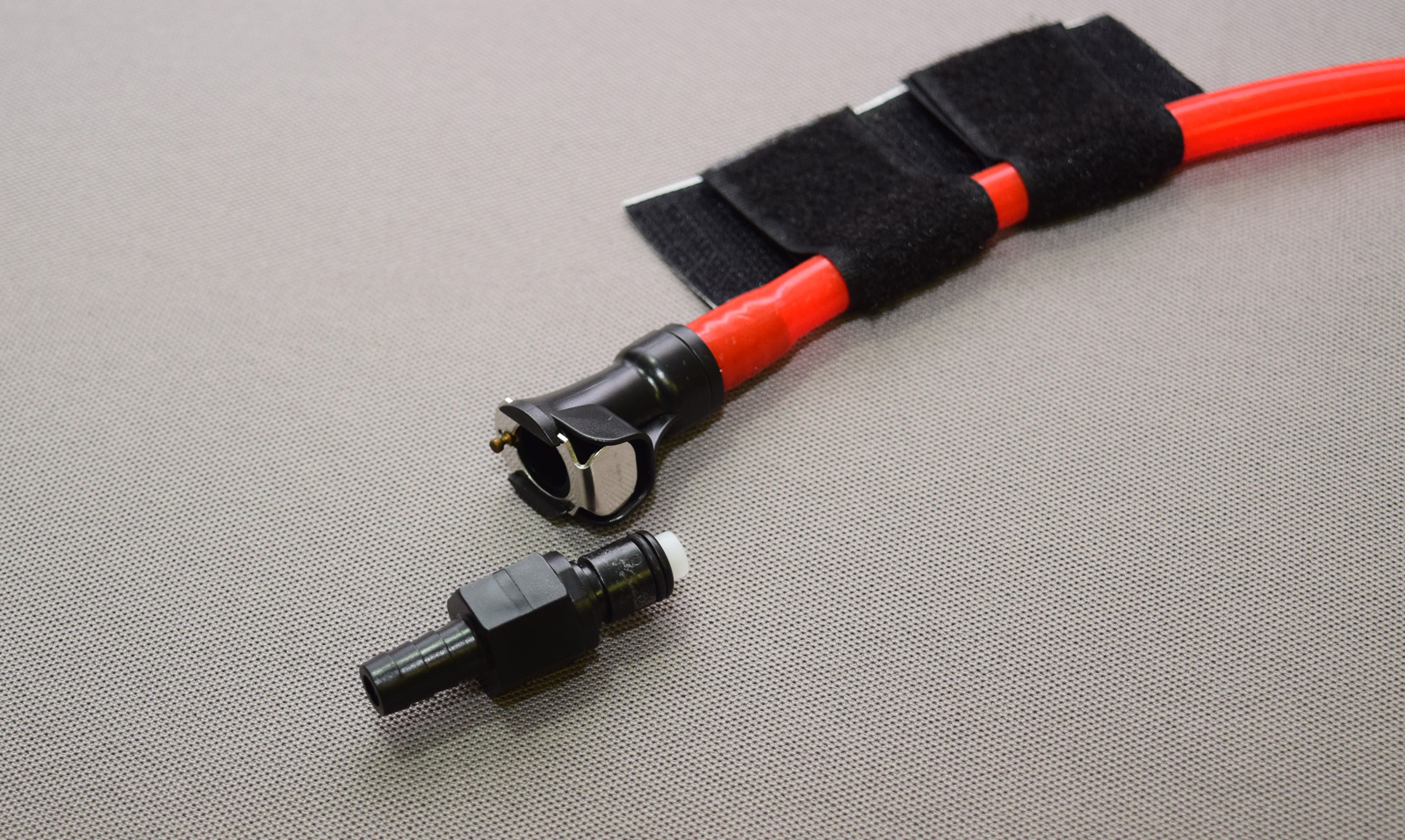 Wężyk z szybkozłączką do kasku systemu hydracyjnego tzw. "Hands free". Szybkie podłączenie do wężyka za pomocą szybkozłączki, prosty montaż bez ingerencji w strukturę kasku. Montaż obustronny za pomocą rzepa na taśmie samoprzylepnej, łatwy, pasuje do wszystkich kasków. Patent stosowany przez wielu zawodników podczas długodystansowych wyścigów. Możesz pić bezpiecznie bez ściągania rąk z kierownicy. Złączka po rozłączeniu zapobiega wyciekaniu płynu.